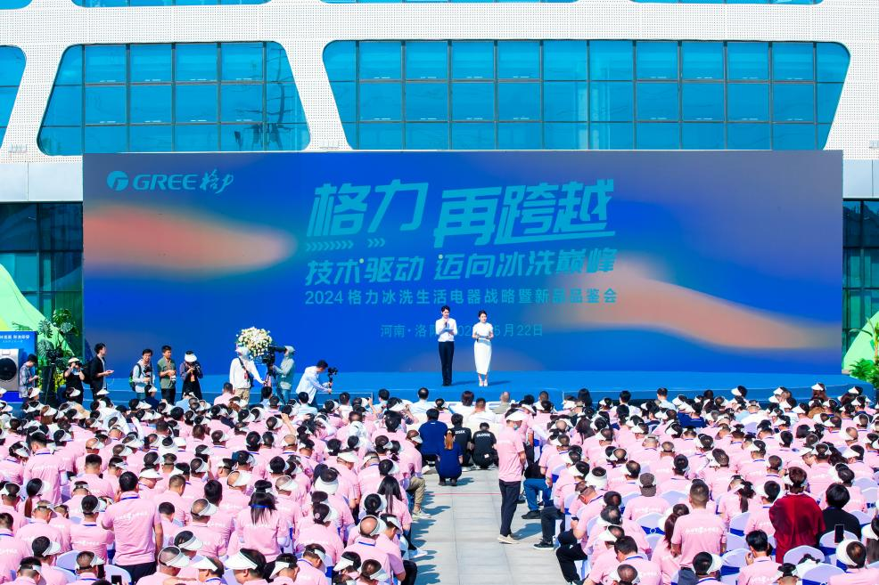 5月22日,以“格力再跨越,技術驅動,邁向冰洗巔峰”為主題的格力冰洗生活電器戰略暨新品品鑒會在河南洛陽隆重舉辦。洛陽市副市長牛剛、格力電器董事長兼總裁董明珠以及經銷商代表、消費者代表、媒體近1500余名嘉賓出席。