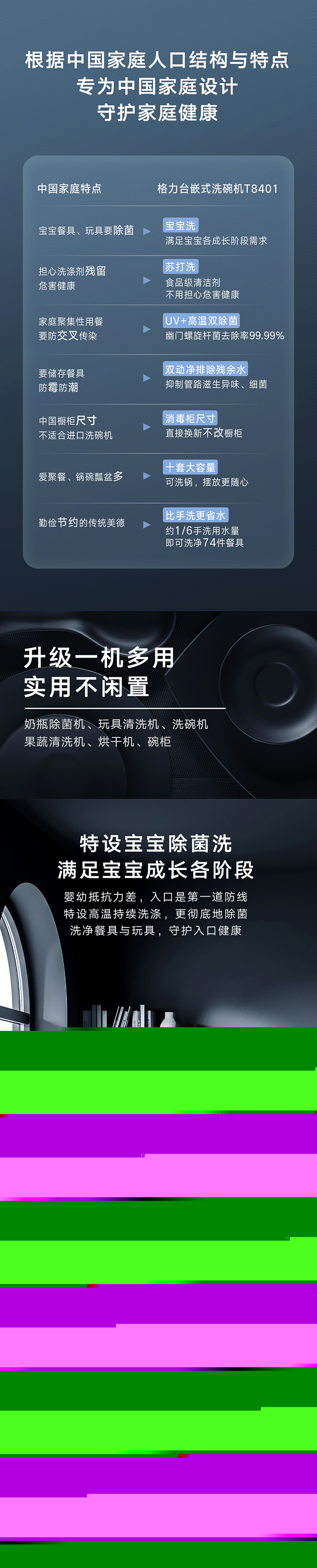 格力健康洗洗碗機,專為中國家庭設計;洗除排烘存更全能;熱風循環烘干,內腔餐具都干爽