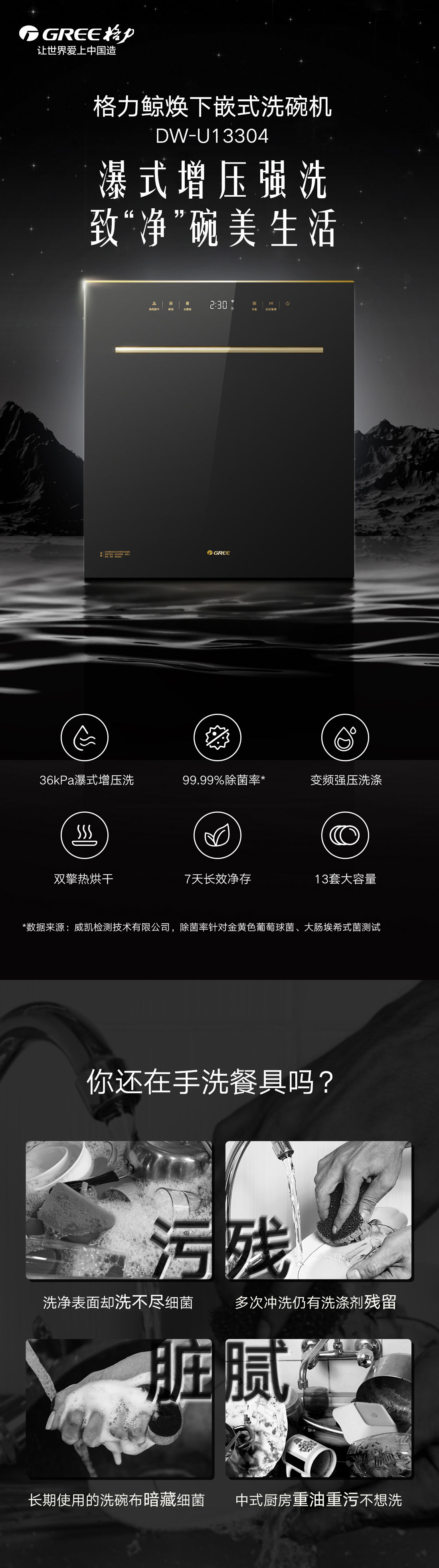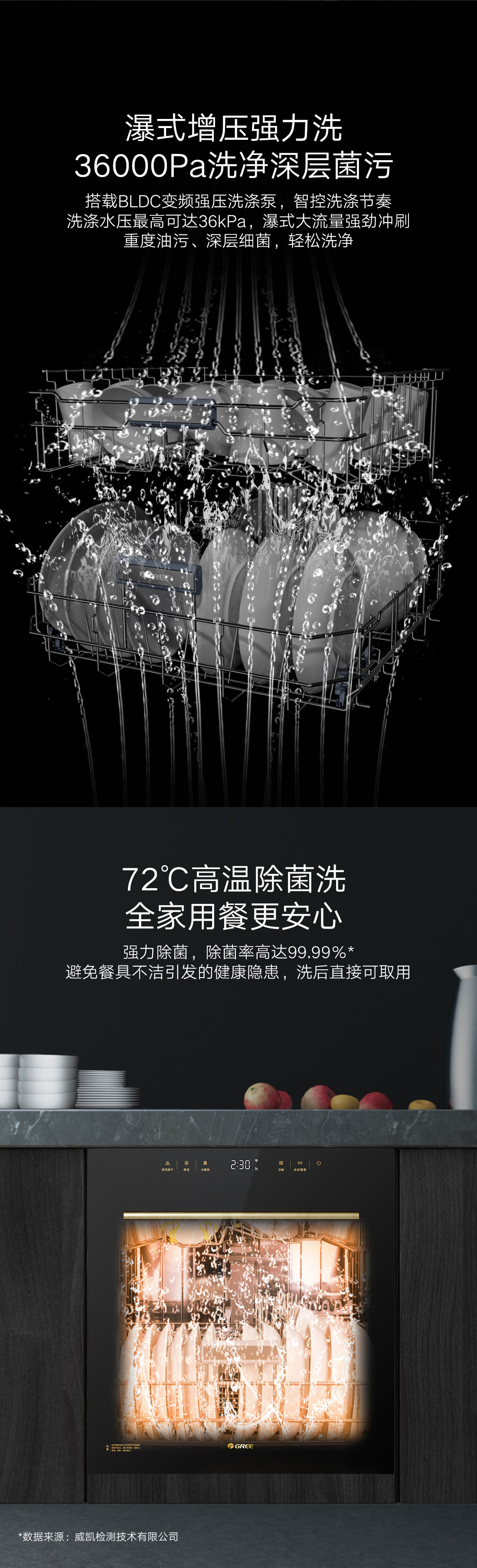 搭載瀑式增壓強(qiáng)洗科技,36KPa洗凈深層菌污,除菌率達(dá)99.99%;洗烘除存一體,存放7天也干爽